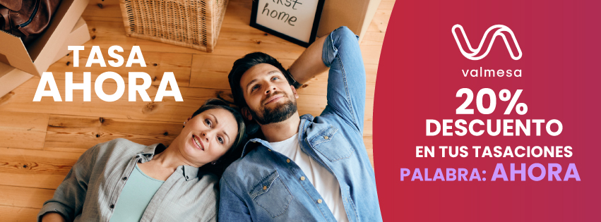 Descuento directo del 20% sobre el coste del servicio si utilizas el Código Promocional AHORA en el encargo que nos realices a través de la página https://www.valmesa.com/tasacion-de-vivienda tanto desde el formulario de contacto como desde la tasación de vivienda online en 1 minuto